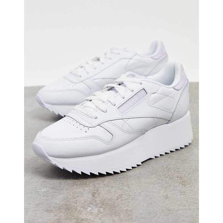 Reebok Classic Leather Double Sneakers met label op de hiel in wit met lila