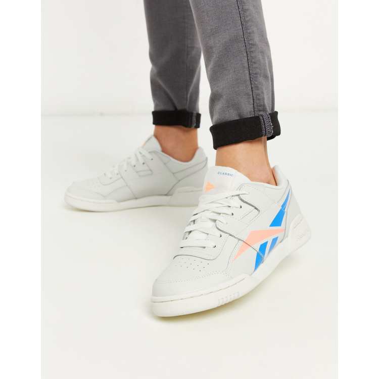 Reebok women's workout clearance lo plus, Reebok workout Lo Plus sneakers in white pink blue clearance