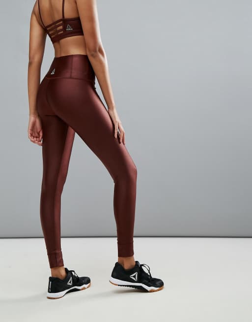 Reebok X Face Metallic legging met hoge taille in bordeauxrood