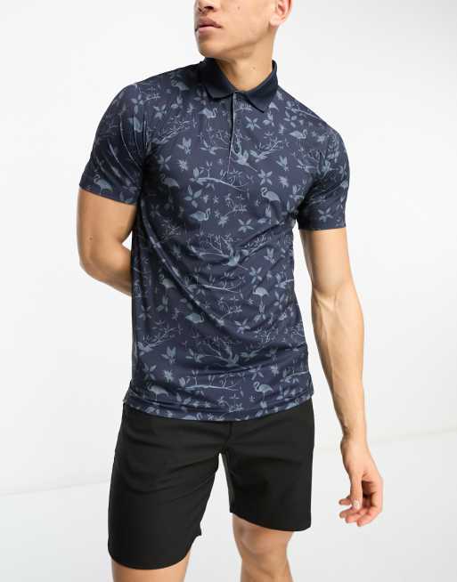 Puma Golf Mattr Lagoon Polo met flamingoprint in marineblauw