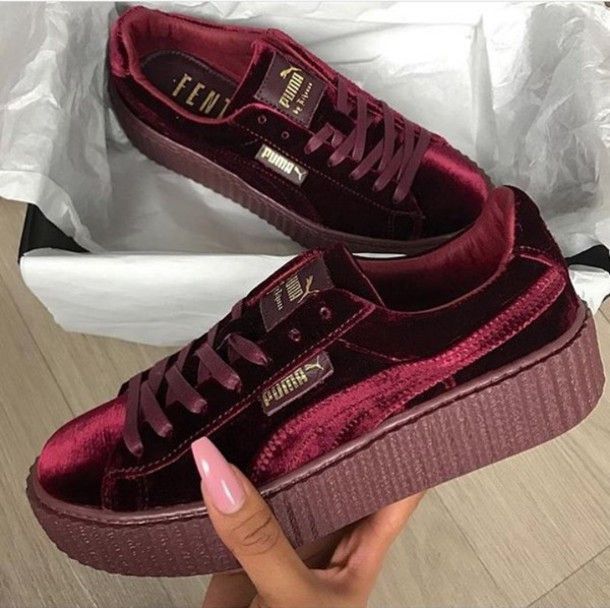 Burgundy clearance rihanna creepers, Puma X Rihanna Puma x Rihanna Fenty Creeper Burgundy Velvet Grailed clearance