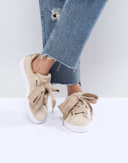 The puma basket clearance heart, Puma Basket Heart Sneakers met metallic randen in beige clearance