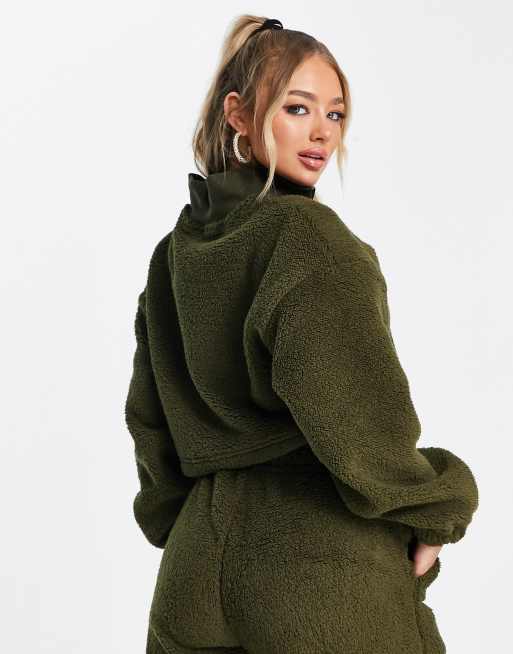 Puma classics cosy club borg half zip sweat in deep olive