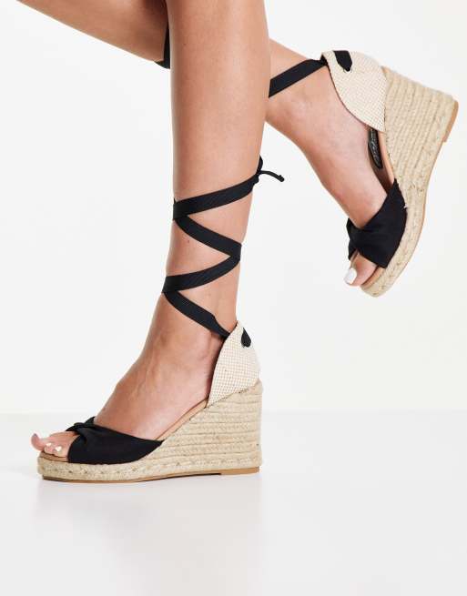 New Look tie up espadrille wedge heel sandal in black ASOS