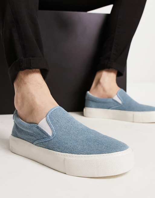 ASOS DESIGN slip on plimsolls in denim blue