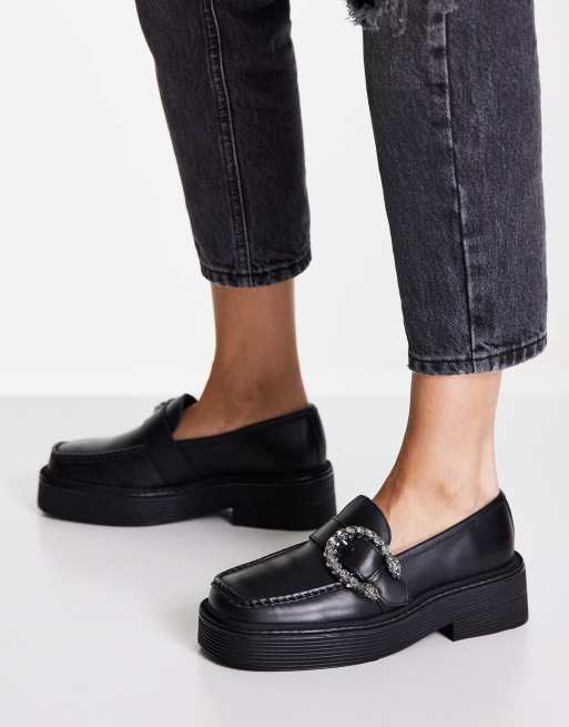 Tony Bianco Wiz Loafers van leer met dikke zool in zwart