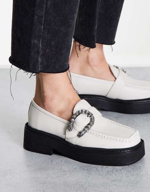 Tony Bianco Gloria Leren loafers met versiering en dikke zool in gebroken wit