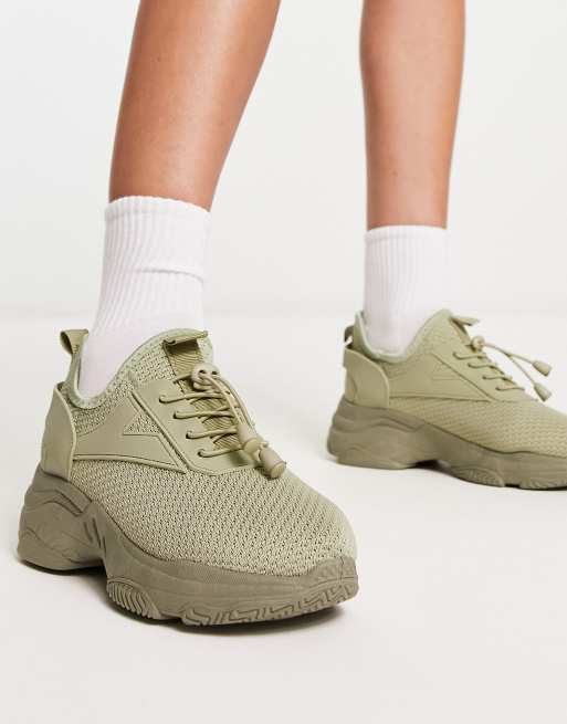 Truffle Collection knitted toggle runner sneakers in sage green ASOS