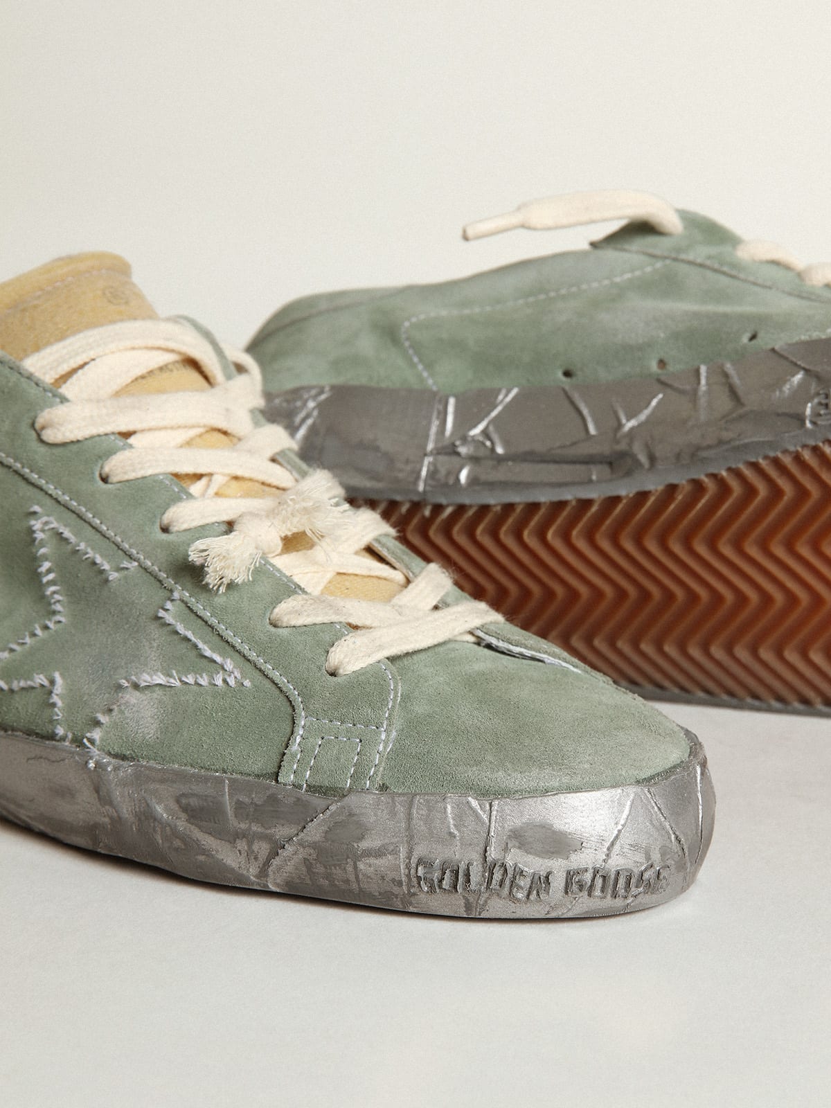 Golden goose green clearance suede, Super Star LAB sneakers in military green suede with mismatched star clearance