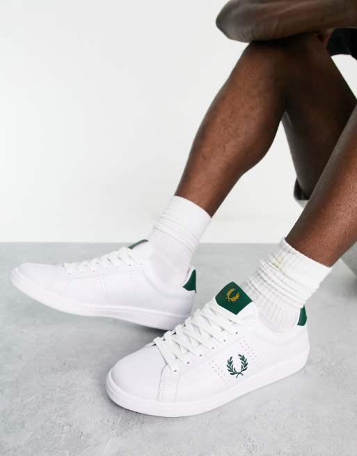 Fred perry shoes clearance b721, Fred Perry B721 green logo leather trainer in white clearance