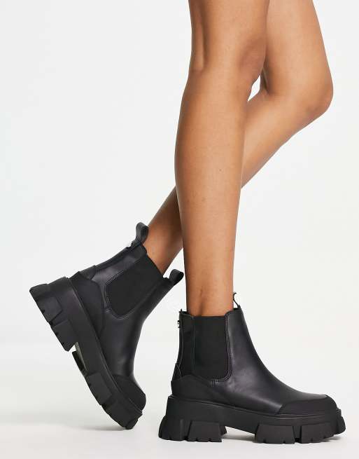 Steve Madden Cave Chelsea boots van leer met dikke zool in zwart BLACK