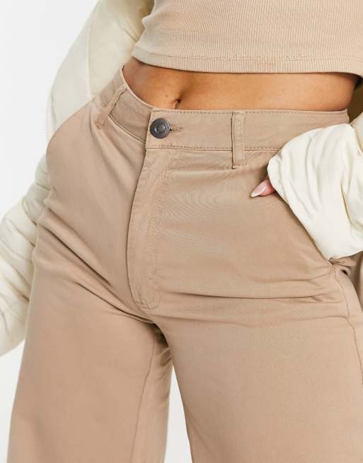 Urban Classics Broek met wijde pijpen en hoge taille in beige ASOS