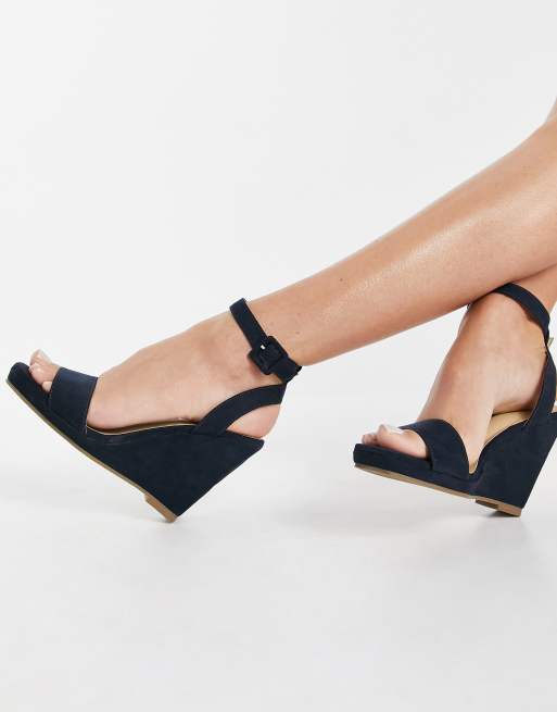 Faux clearance suede wedges, Oasis toe post faux suede wedges in navy clearance