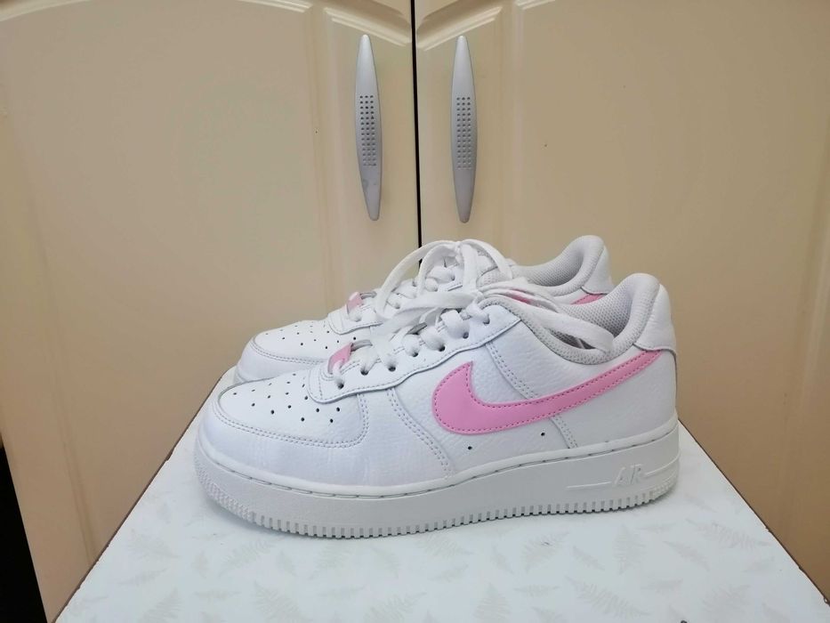 Nike air force 1 white clearance pink tick, CRYSTAL NIKE AIR FORCE 1 LIGHT BLUSH TICKS Loves Sparkle clearance