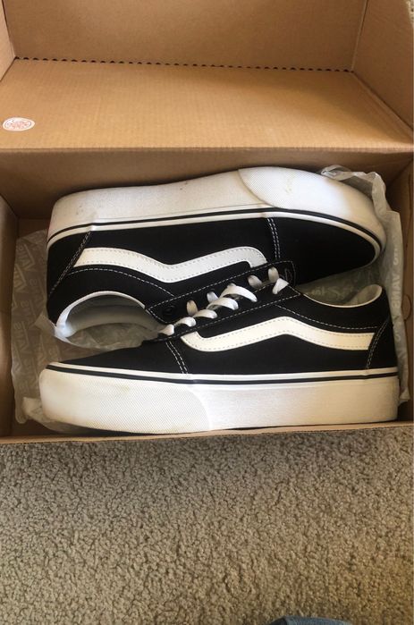 Vans old skool clearance platform black white, Womens Old Skool Platform Trainers Black White clearance