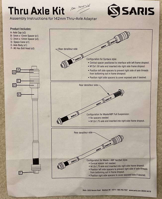 Saris 142x12mm Thru Axle Trainer Adaptor Skewer The Pro s Closet