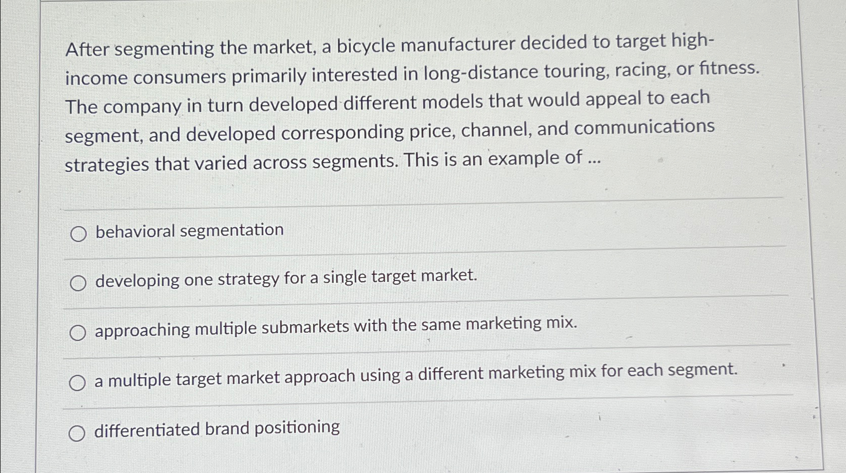 Solved After segmenting the market a bicycle manufacturer Chegg