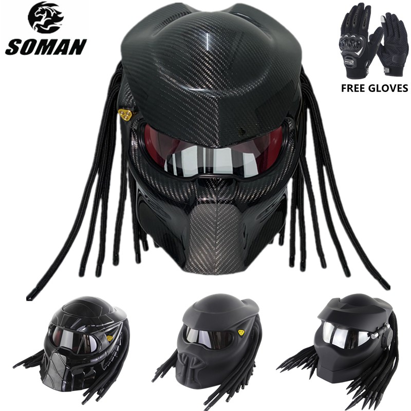SOMAN Black Predator Helmet Full Face Retro Motorcycle Helmet