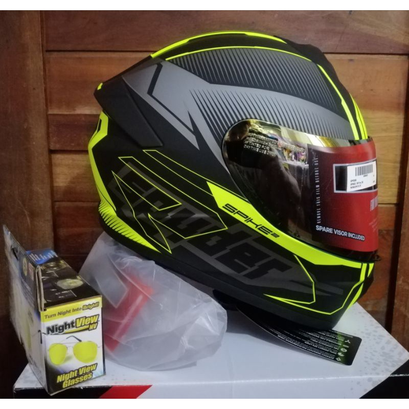SPYDER SPIKE 2 MATTE BLACK NEON GREEN HELMET CLEAR LENS WITH FREE
