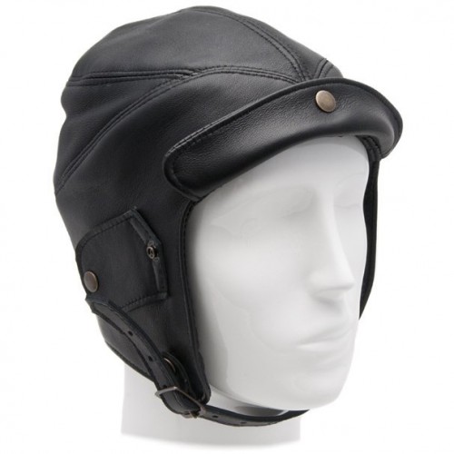 Leather Aviator Hat Black Motorcycle Helmet Pilot Cap