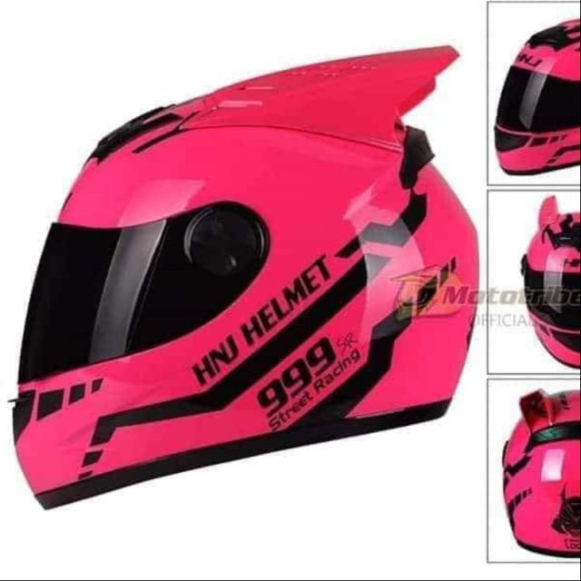 Pink Warrior 999 HNJ Motorcycle Helmet with Horns Black Visor