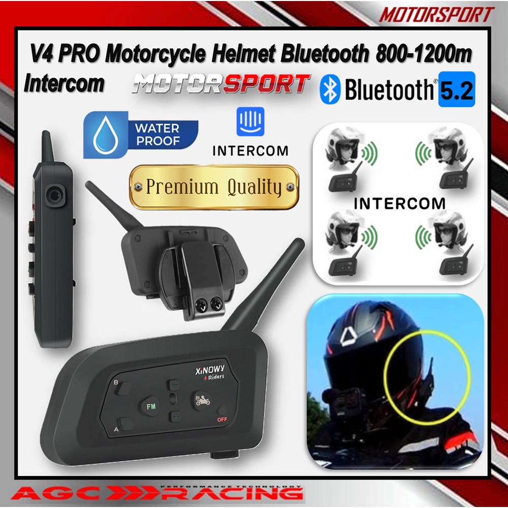 V4 Pro 1200m Motorcycle Helmet Bluetooth Waterproof Interphone