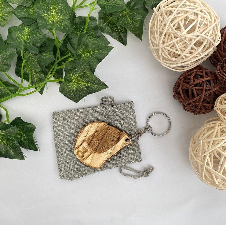 Personalised Helmet Wood Keyring with Gift Bag Folksy
