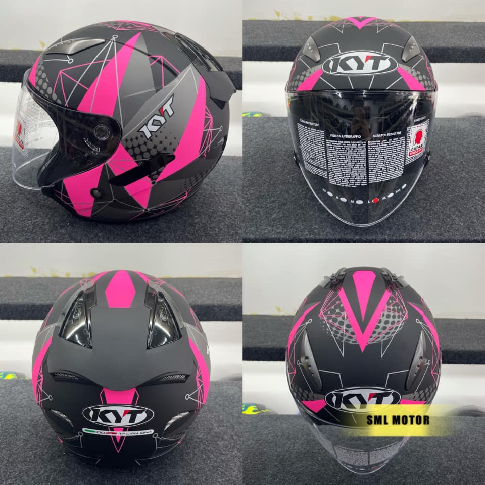 Kyt clearance pink helmet, KYT HELLCAT New Graphic Matrix Matt Black Pink Fuxia Open Face clearance