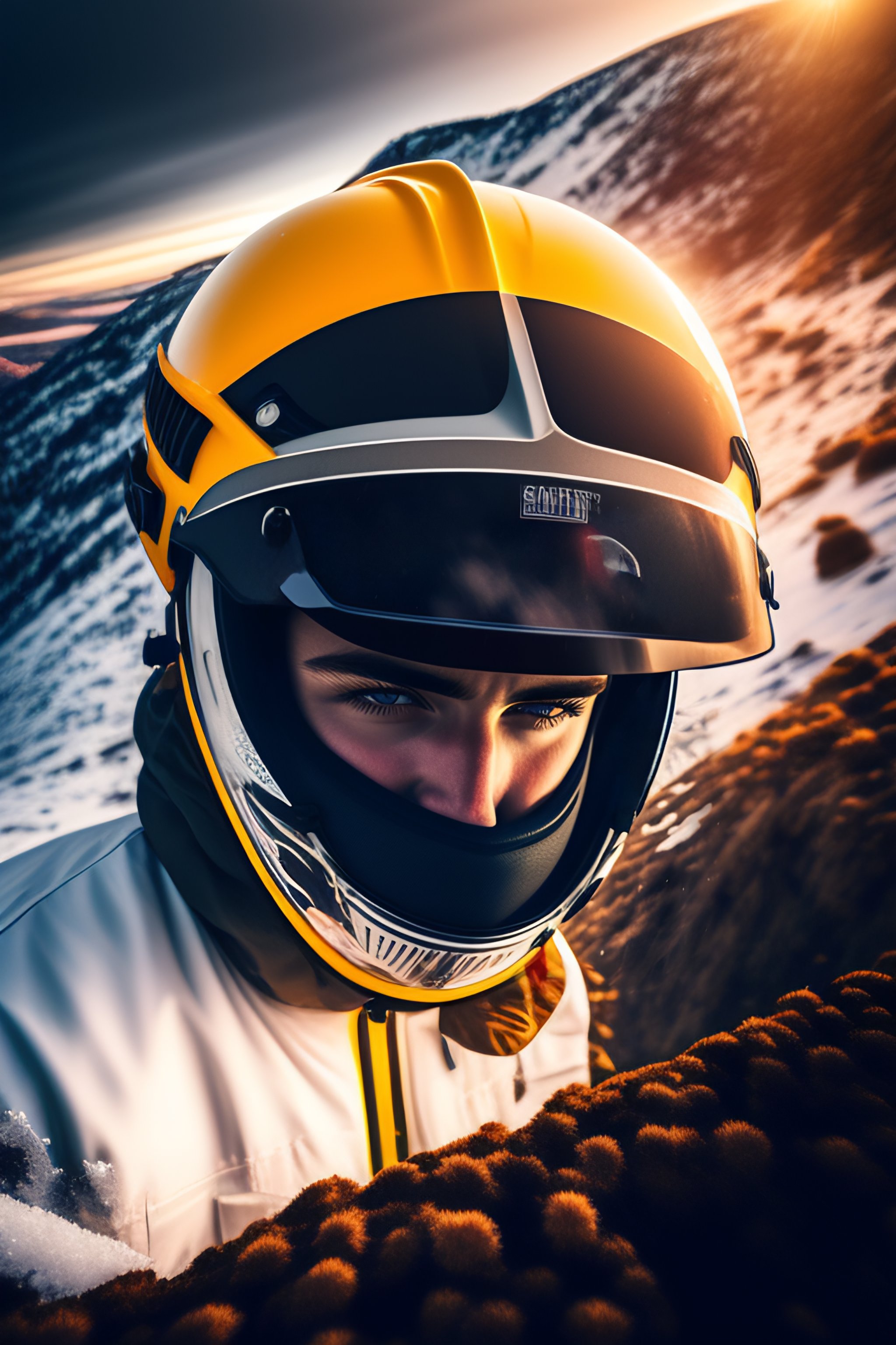 Lexica Oil rig worker in a helmet and glasses from above snow
