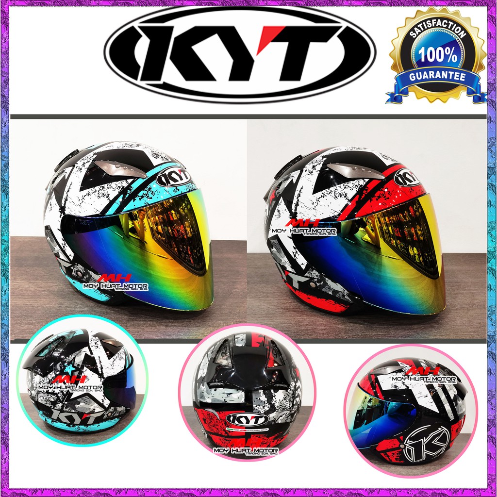 ORIGINAL KYT HELLCAT K RACING BLACK RED AQUA BLUE HELMET KYT