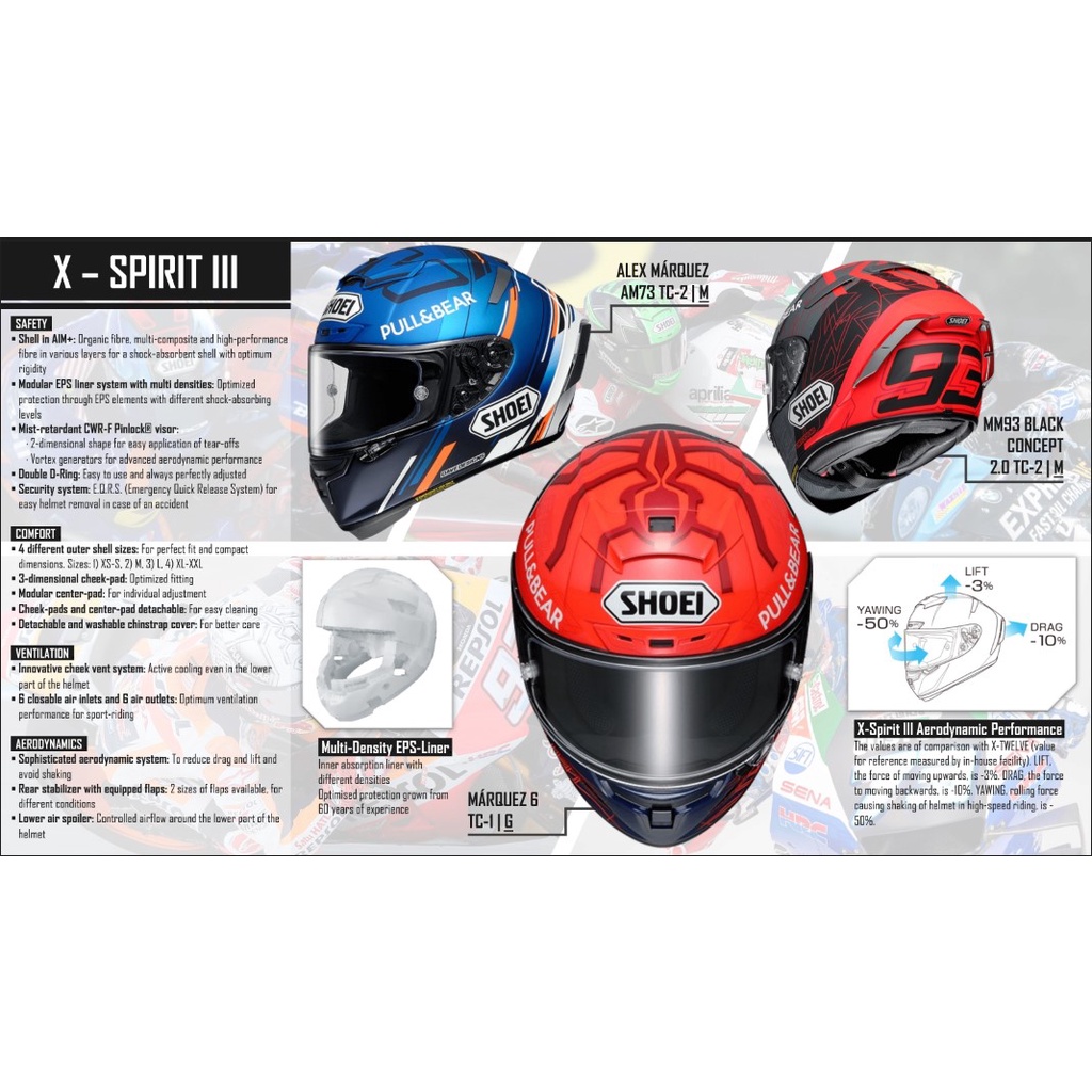 Shoei x 14 clearance shell sizes, HELMET SHOEI X SPIRIT 3 SHOEI X SPIRIT 3 MARQUEZ6 X SPIRIT III clearance