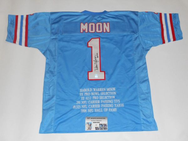 1 WARREN MOON Houston Oilers NFL QB Blue Stats Throwback Jersey