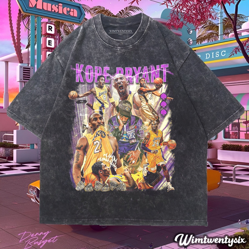 Kobe BRYANT NBA LAKERS WASHING VINTAGE TEE Washable T SHIRT