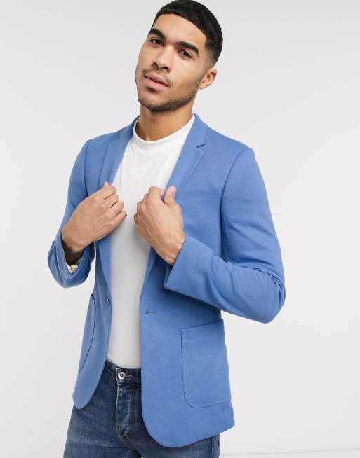 ASOS DESIGN super skinny jersey blazer in mid blue