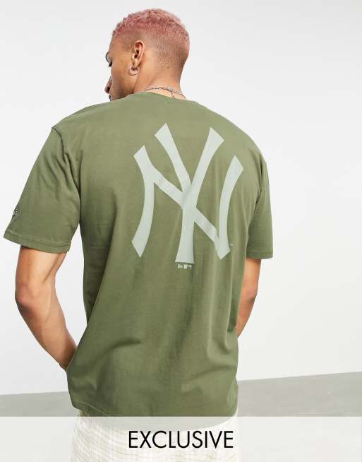 Mlb new york clearance yankees t shirt, New Era MLB New York Yankees t shirt with back print in khaki clearance