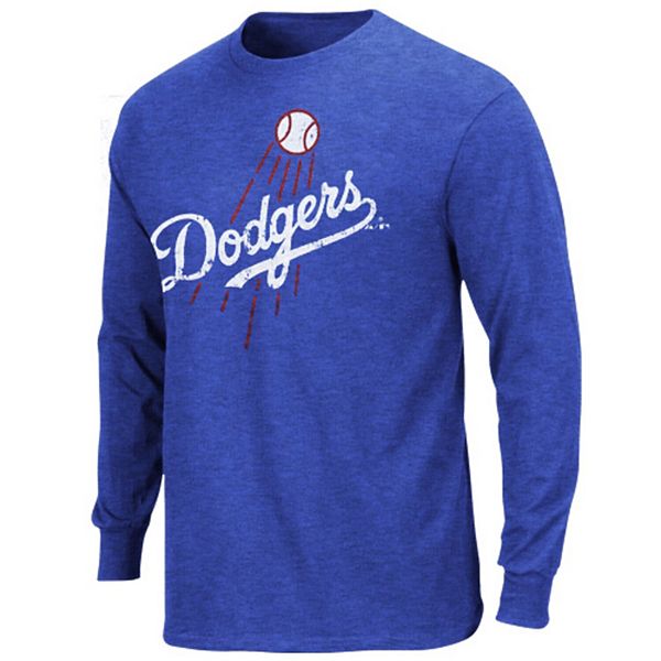 Majestic Threads Los Angeles Dodgers Tri Blend Logo Long Sleeve T Shirt Royal Blue