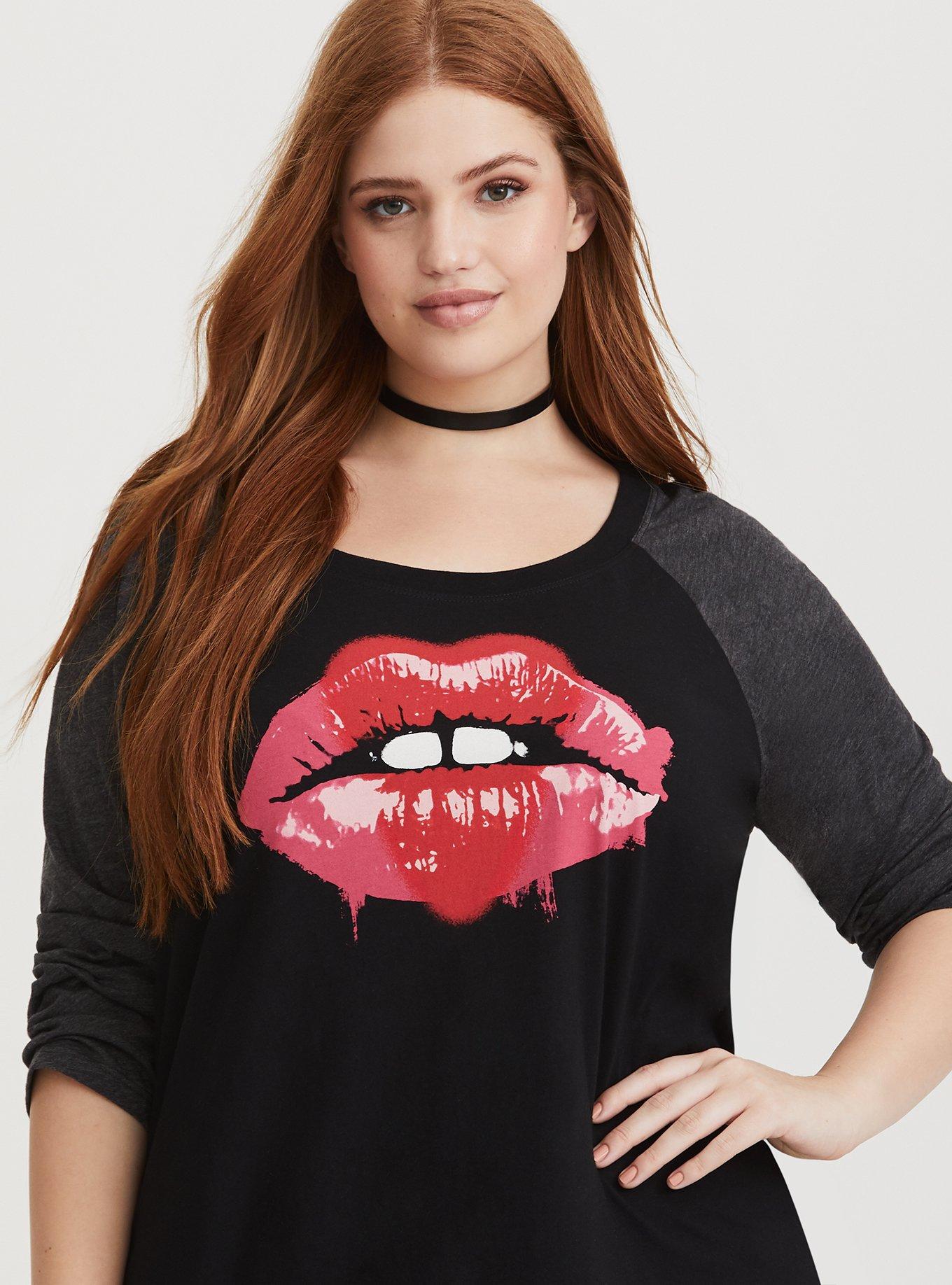 Plus Size Lip Graphic Grey Black Baseball Tee Torrid