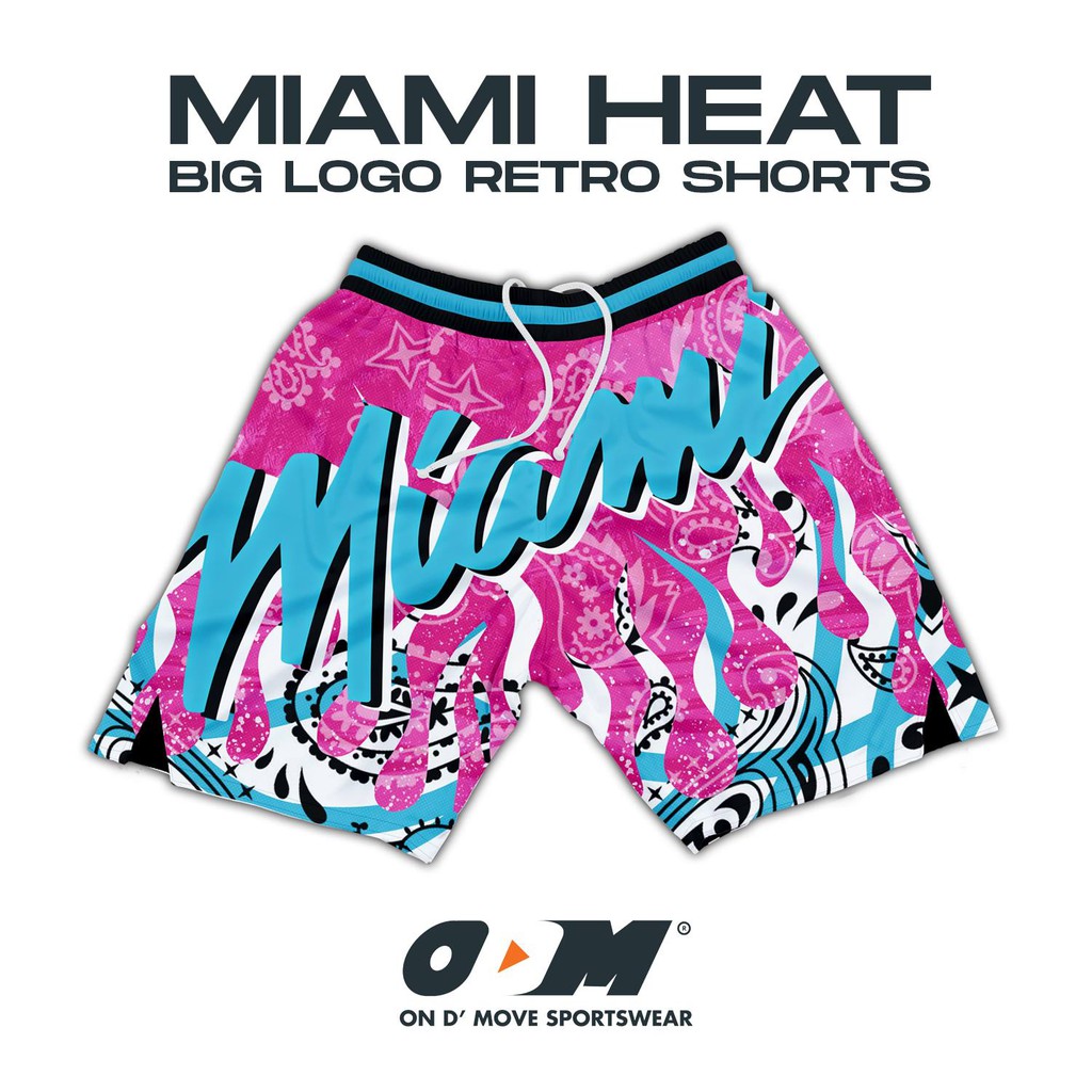 Miami heat shorts clearance retro, RETRO BIGFACE COLLECTION Miami Heat Basketball Shorts Stitched clearance