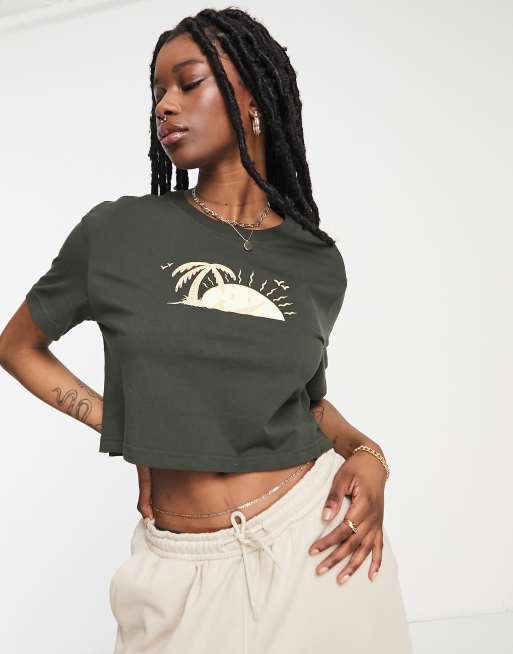 Crop top sun clearance shirt, Sun Sea Roses Sunflower Crop Shirt Yellow Multicolor Bazics clearance