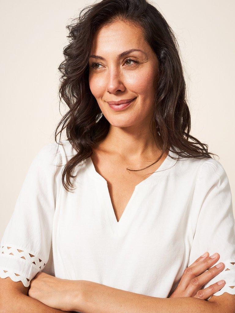 SAGE TRIM TOP in PALE IVORY White Stuff