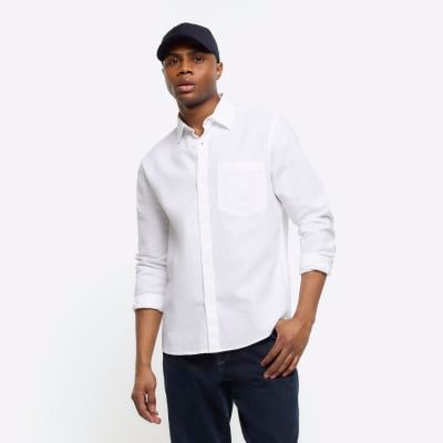 Mens River Island White Regular Fit Linen Blend Shirt 35.00