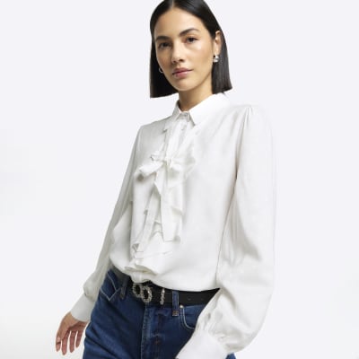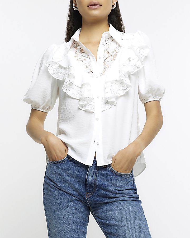 River island white clearance frill shirt, Buy Noisy May NMPINAR L S FRILL SHIRT Bright White Nelly clearance