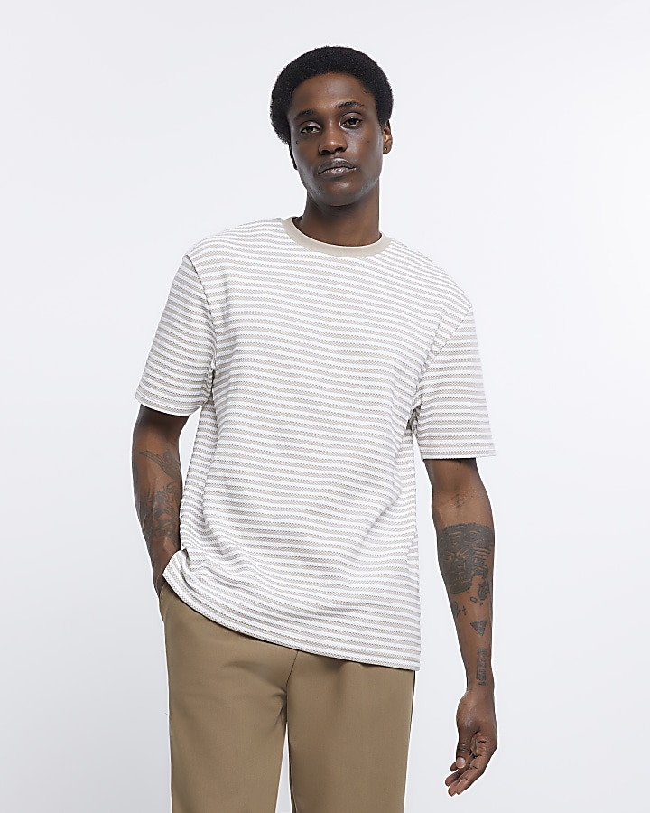 River Island Short Sleeve Regular Fit Stripe Aperton T shirt