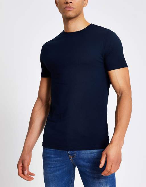 River Island Navy Blue Muscle Fit T Shirt