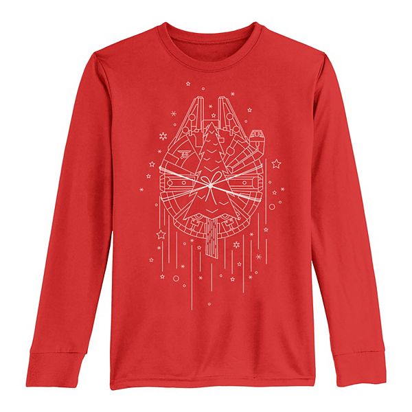 Boys 8 20 Star Wars Christmas Millennium Falcon Tree Transport Long Sleeve Tee