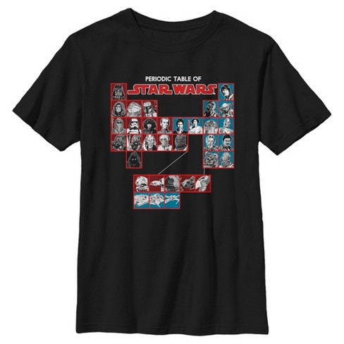 Star wars periodic clearance table shirt, Boy s Star Wars A New Hope Hero Periodic T shirt Black X clearance