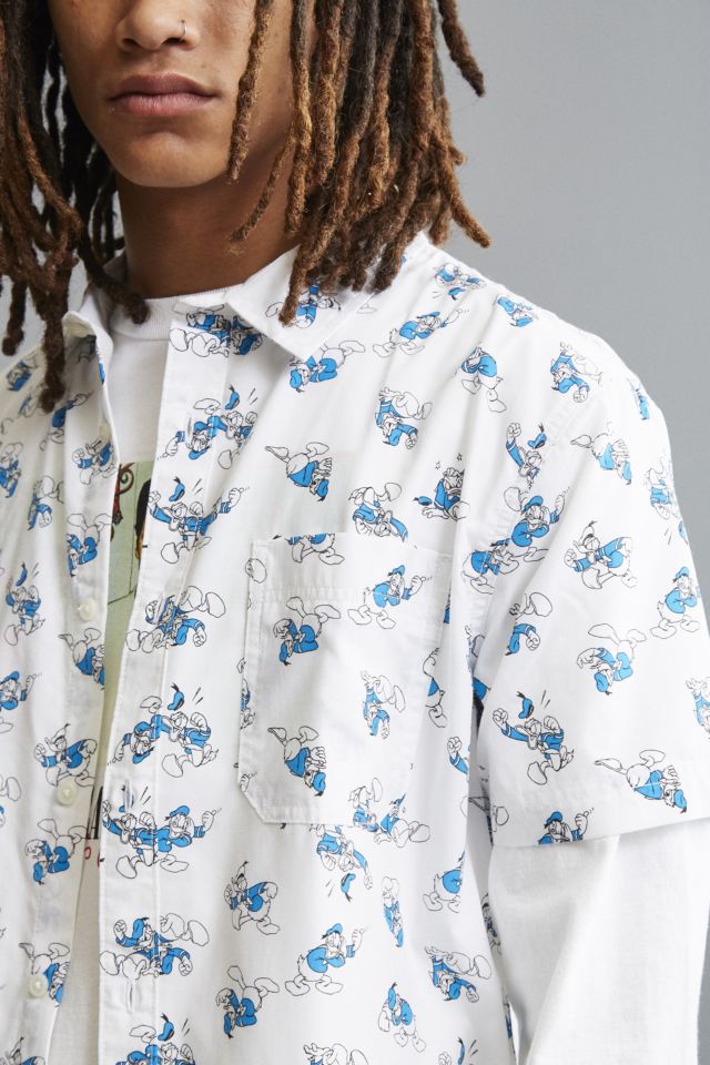 Novelty Donald Duck Short Sleeve Button Down Shirt