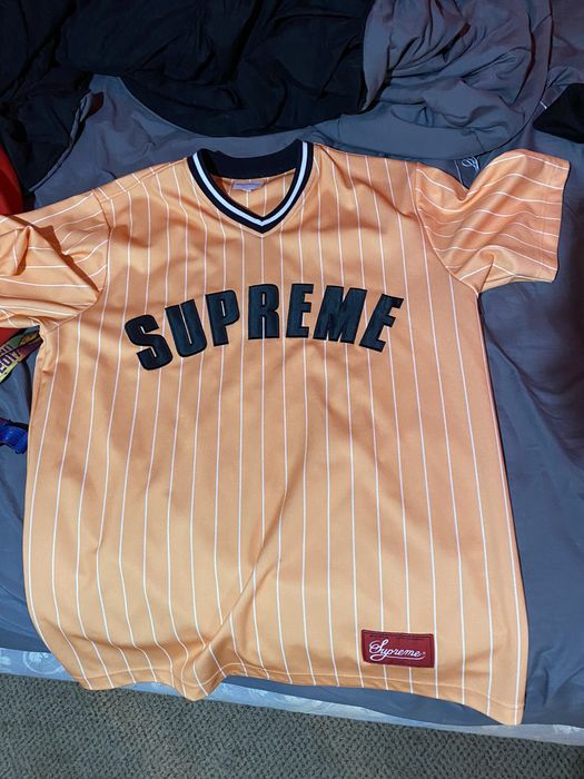 Supreme pinstripe baseball clearance jersey