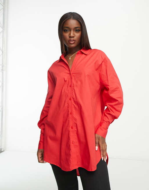 Bright red shirt clearance womens, Bright Orange Embroidered 3 4 Sleeve Oversized Shirt New Look clearance