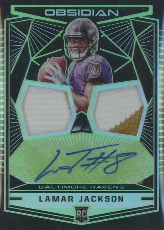 Lamar Jackson 2018 Obsidian Rookie Jersey Ink Dual Relics